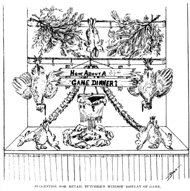It wasn’t just the lucky attendees of Drake’s dinners who ate woodcock and quail, of course. Markets throughout the country offered a wide selection of wild birds and mammals to anyone who fancied eating them. But the game dinners offered by upscale hotels and restaurants meant more than gathering around a carved turkey. These were celebrations—one could say orgies—of America’s abundant wildlife, and their reputation extended around the world. In 1898 the Australian magazine Table Talk called game dinners “an American institution.”6