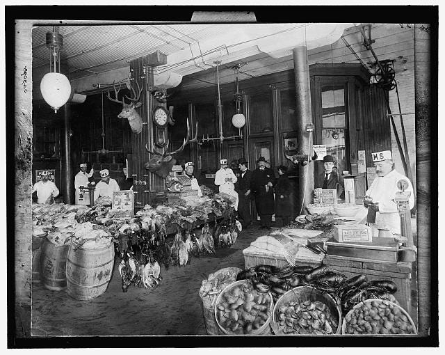 But as the century wore on, game was not quite so available as it always had been, and Drake was forced to draw from far-flung lakes and marshes out of necessity. This was not a welcome development among the gentlemen hunters who made up the sporting class, who were becoming ever more critical of the market systems that brought these beasts to the insatiable urban masses and in the process drained the country of the animals which sportsmen were finding increasingly difficult to find. One sportsman complained that “for the dinner of 1888, as may be seen, [Drake] fairly ransacked the Rockies to the sea.”9